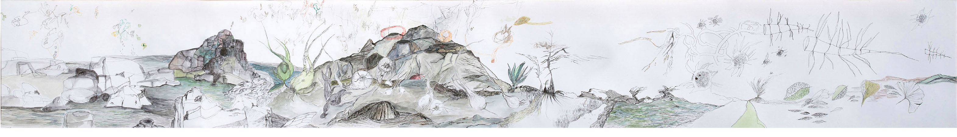 S/T, de la serie Estado Paisaje, tinta y acuarela sobre papel, 30x230 cm., 2012